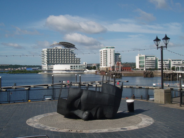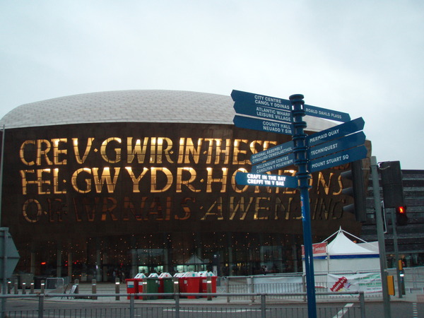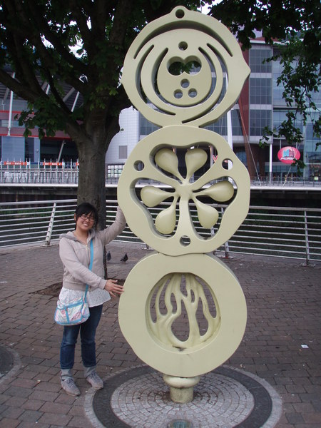 第二天也是很早就醒了,配大螢幕電視享用Hostel附贈的早餐(只要有烤土司和巧克力醬就是好早餐),吃飽喝足了才八點半。卡地夫城堡要9點才開門,我利用這點時間往Cardiff Bay的方向散步。因為第一個晚上走過一遍,所以這次只花20分鐘到到(我走路很快,侃儒可以作證)。第一次到這兒已是傍晚,大家匆匆與Wales Millennium Center合照,連水管狀的Visitor Centre蹤跡都沒見到,就急著折回。幸好今天又來了一次,才能見識到藍天白雲的卡地夫灣。時間還早,只見當地的上班族、不見和我一樣拿著相機的遊客,自拍起來非常過癮,不會有人擋我的鏡頭,也不用因為霸占拍照景點太久而不好意思。(其他遊客見我自拍辛苦,常自告奮勇要幫我拍照。只能說他們不懂自拍的樂趣)